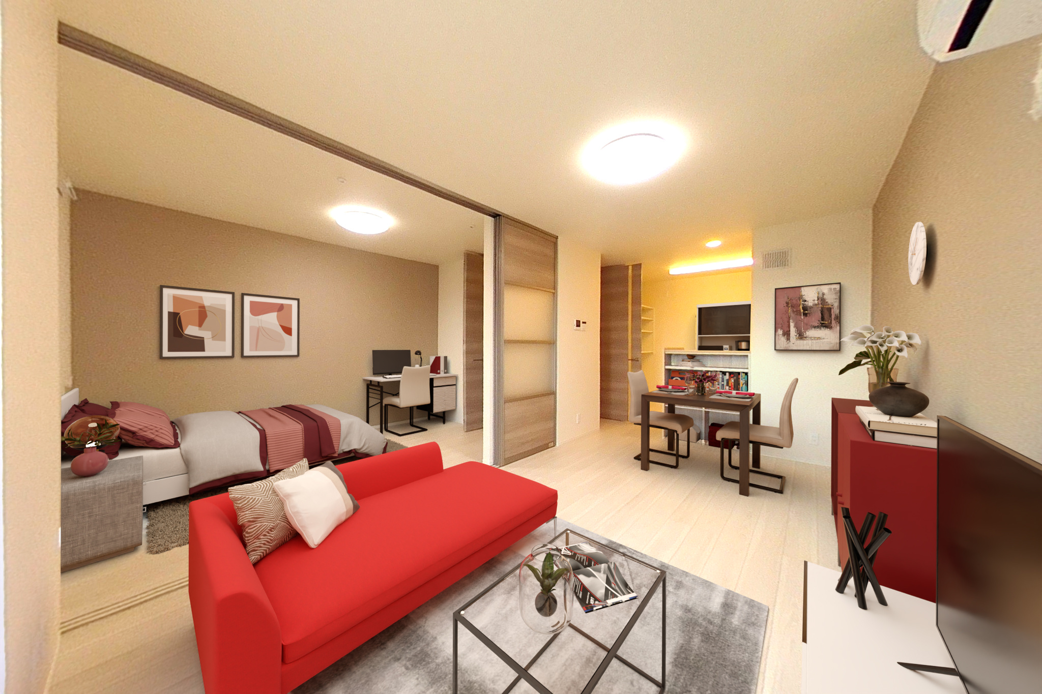 | 賃貸物件の広告 | 内見予約数の増加 | 空室にCGで家具を配置 |