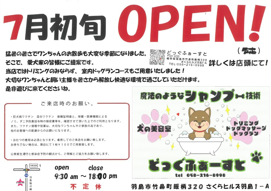 犬の美容室「どっぐふぁーすと」7月初旬オープン✨
