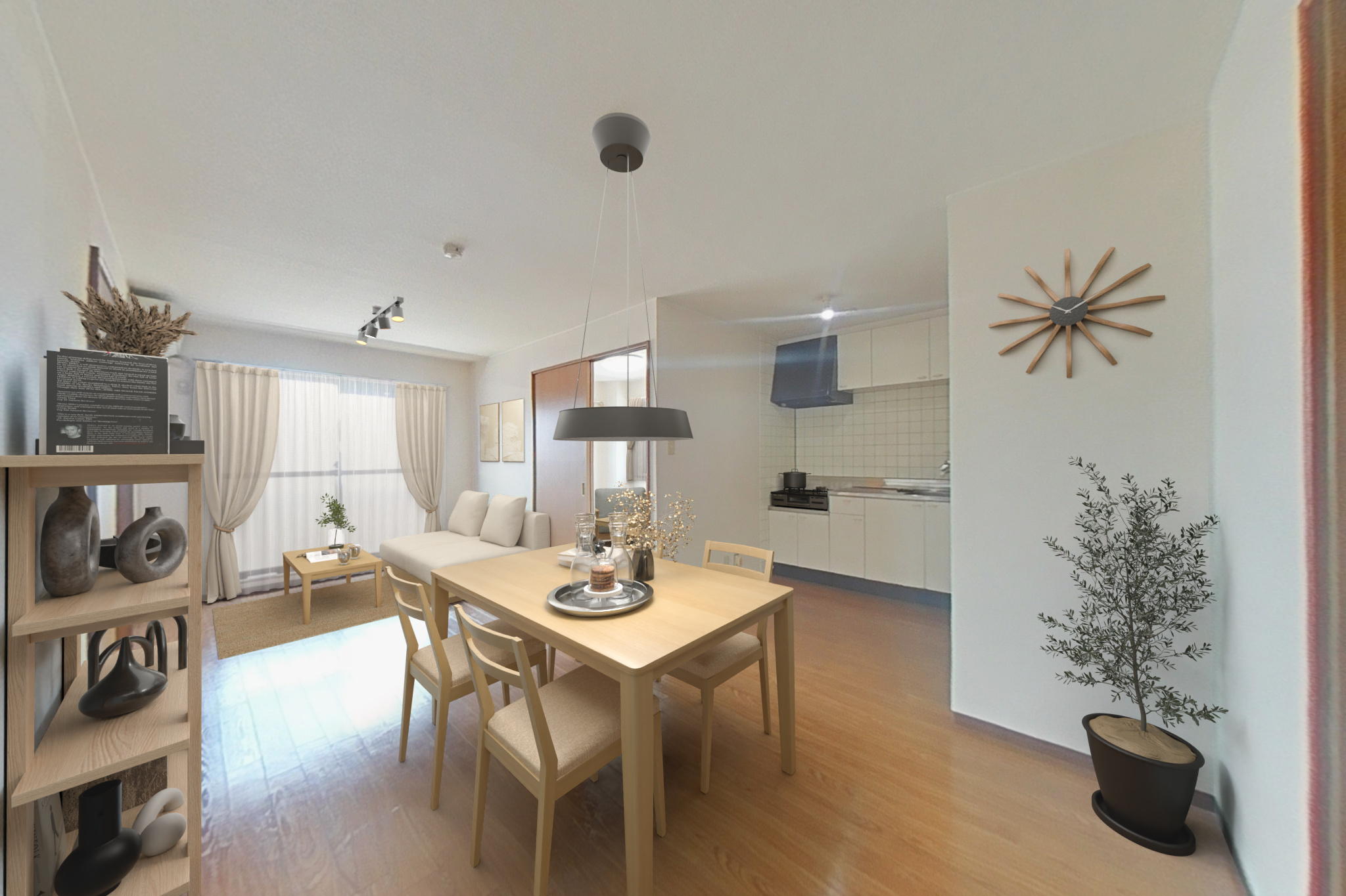 CGホームステージングとは、室内の写真にCG(コンピュータグラフィックス)で家具や小物を合成し、まるでモデルルームのような演出を行う技術です。従来の実際に家具を搬入するホームステージングとは異なり、搬入・搬出の手間や費用・家具による傷のリスクを回避できるため、導入のハードルが低く、効率的です 。