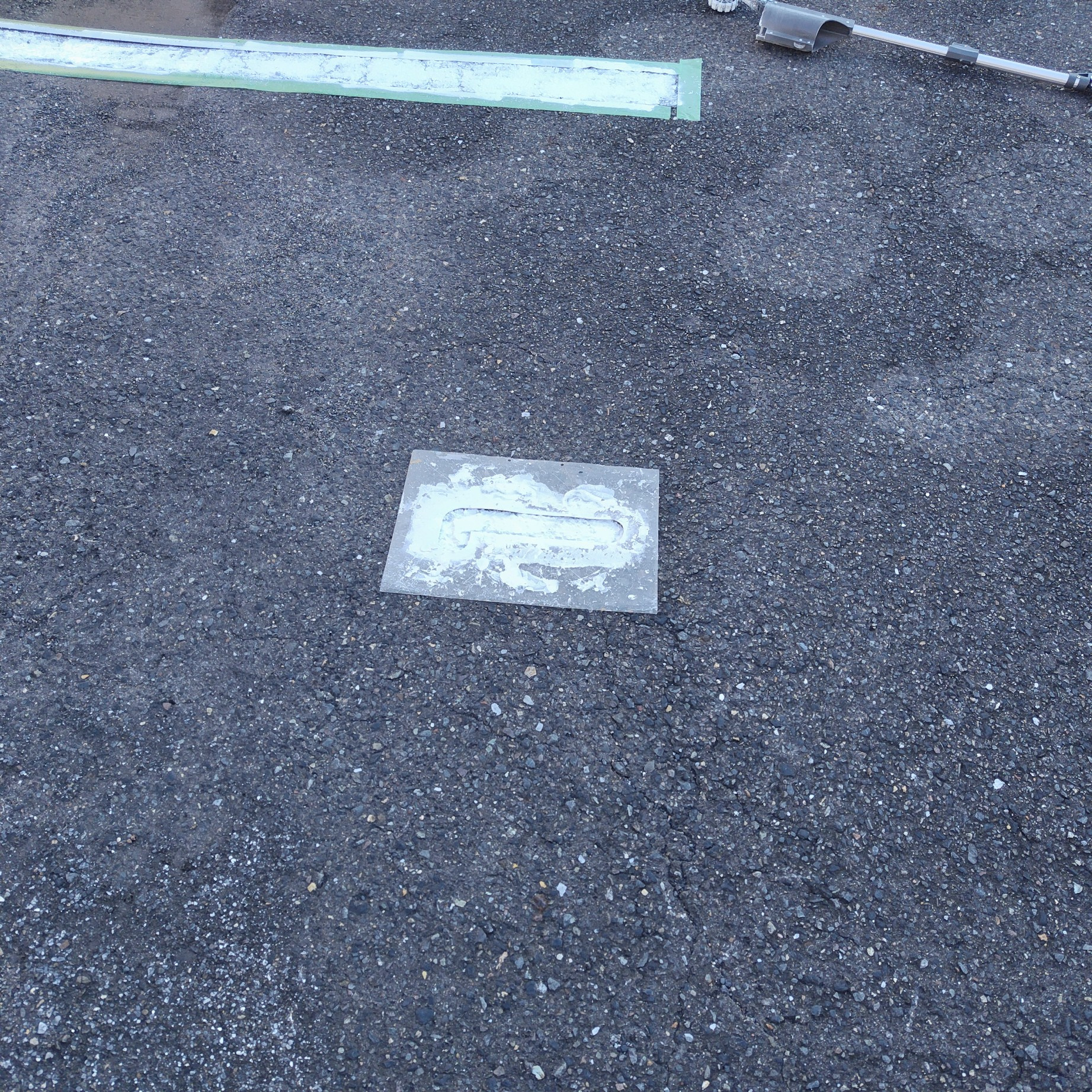 駐車番号や記号を地面に描くための型。数字やアルファベットの形状が整う。 |