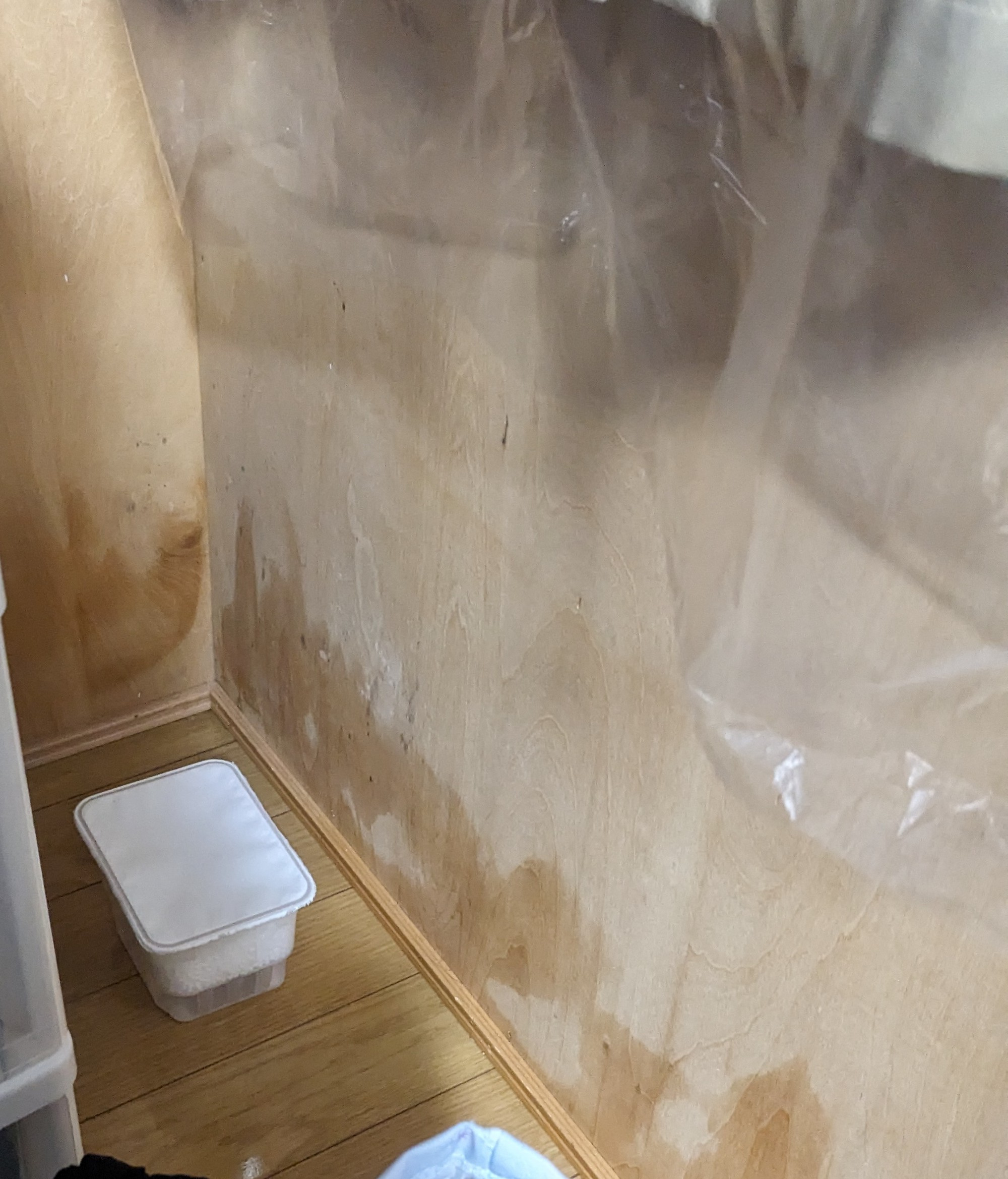 【クローゼット内】結露で壁にシミができておりました