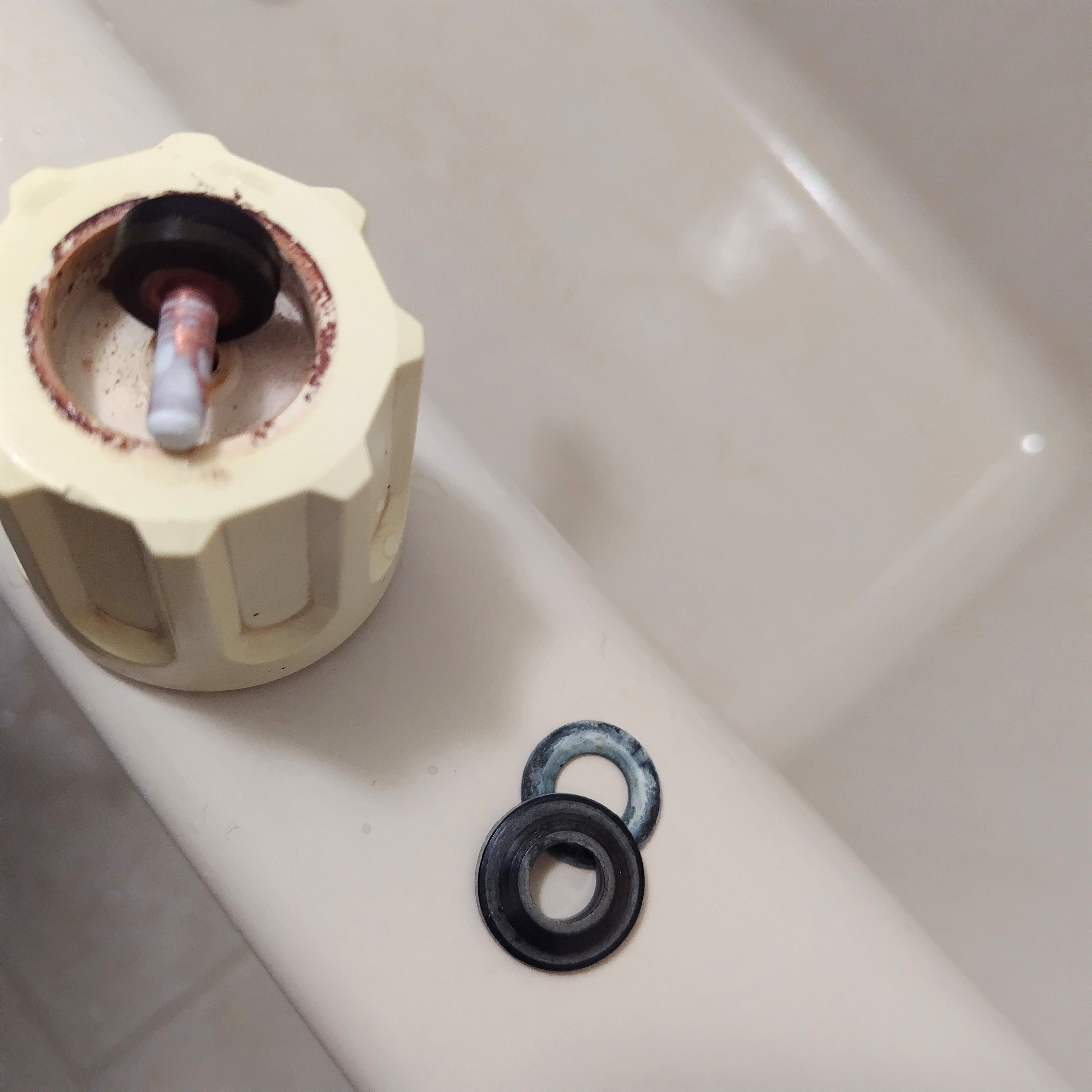 水を止める役割を持つゴム製パッキン。 劣化すると、ハンドルを閉めても水が止まりにくくなります。
