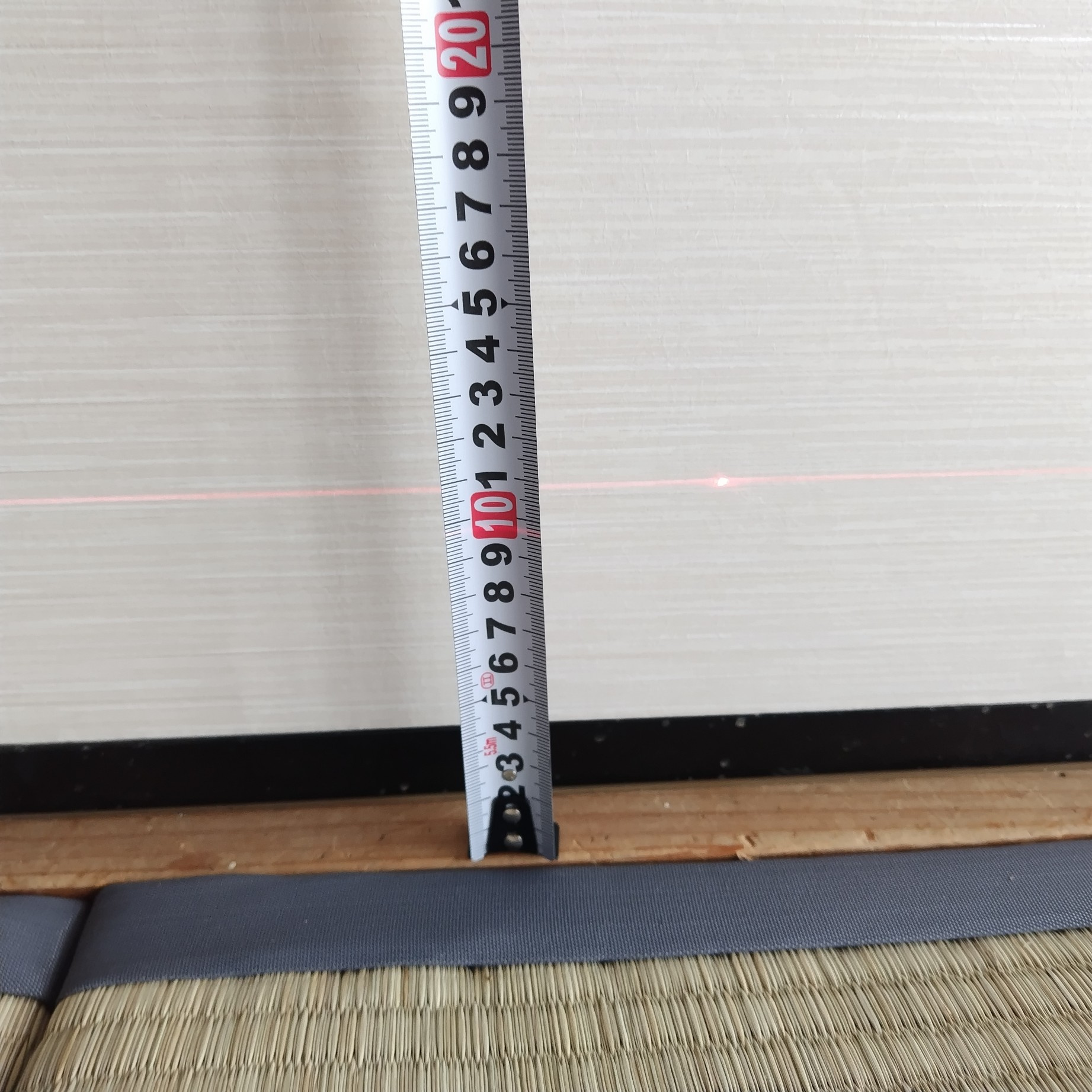 • 調査方法:部屋の中心にレーザー墨出し器を設置し、四方と四隅の床とレーザーの距離を測定。