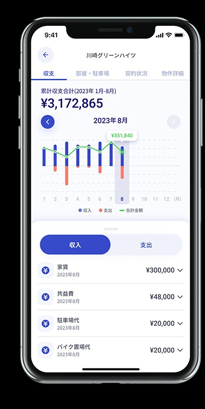 •収支報告書の電子化 毎月の収支報告書をアプリ上で確認可能。郵送の手間がなくなり、スピーディに情報を共有できます。