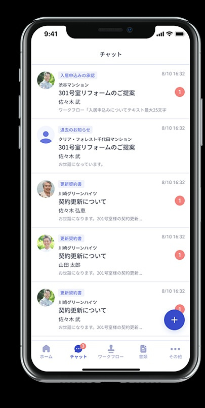 •チャット機能 担当者とリアルタイムでやり取りが可能。画像やPDFも送信できるため、現場の状況を即座に共有できます。