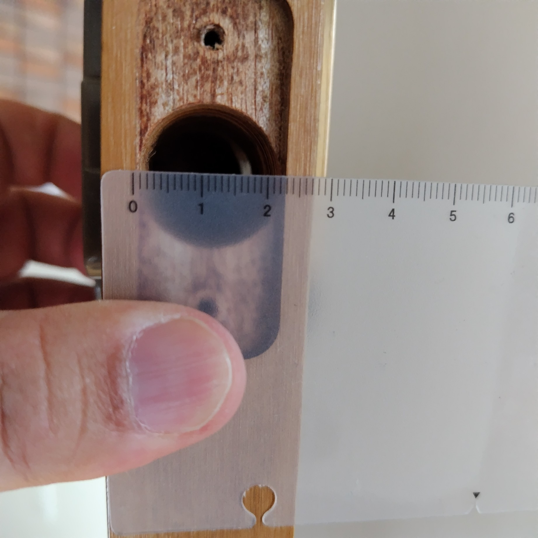 ラッチはメーカーや年代によってサイズが異なるため、交換の際は必ず寸法を測る必要があります。今回は以下の箇所を測定しました。※過去の経験で、半透明のやや弾力のあるスケールが使いやすいです。金属製のメジャーだと反りや先端の引掛け部分でまっすぐ測れず数ミリずれることがありました。