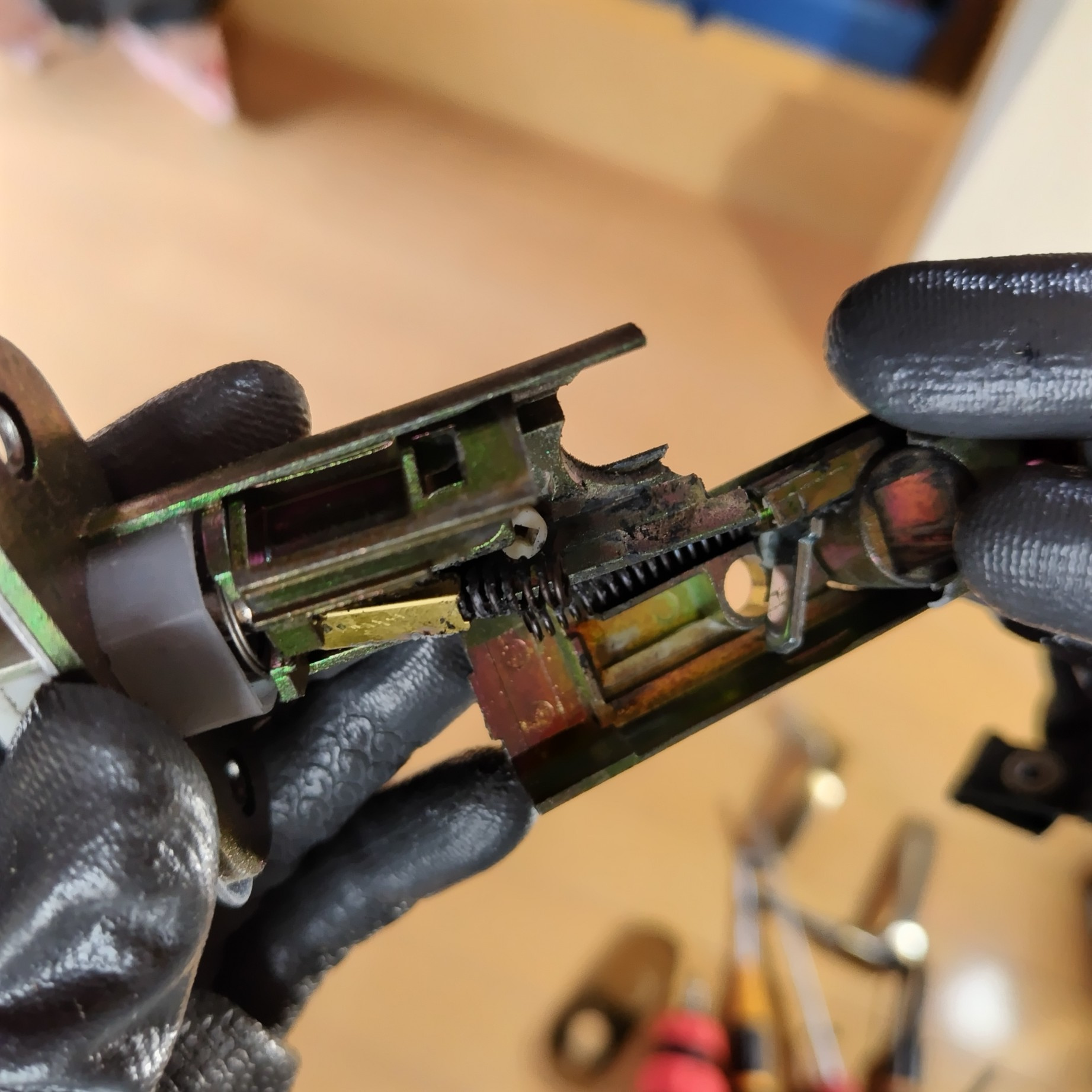 内部にはバネや金属のカムが入っており、長年の使用で摩耗や破損が起こることがあります。
