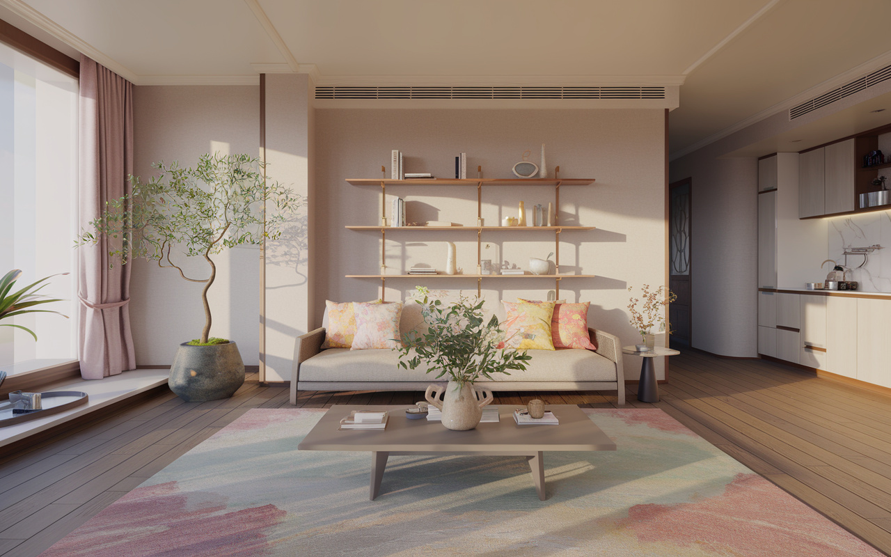 色づかいや光の扱いについても、春らしさを演出するチャンスです。ベースは白やアイボリーなど明るいトーンに統一し、木目と若草色などをアクセントに加え、色数を3色以内に絞るのが日式インテリアのセオリーです。間接照明を壁沿いに配置することで、空間に「面での明るさ」を生み出し、天井が高く感じられる視覚効果も得られます 。